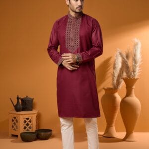 Premium Maroon Digital Print Panjabi